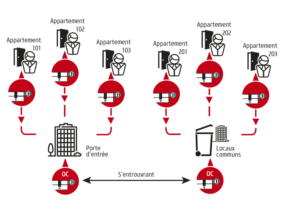 Accès limité à certains cylindres selon les fonctions attribuées (employés, prestataires, occupants).